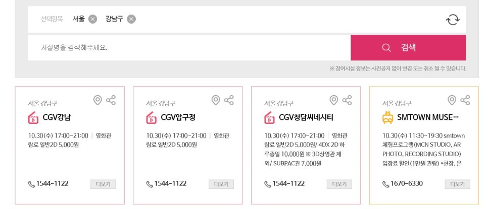 (단, 지역별 상영관별 시행여부가 다르기 때문에)