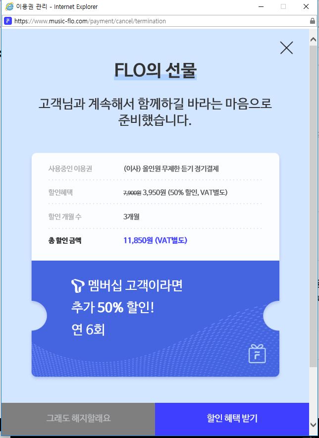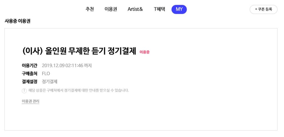 플로 스트리밍 이용권 이벤트 당시에 확인하지 못한
