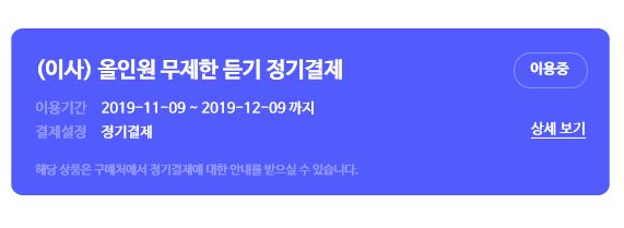 스트리밍 이용권명이 뜨고 옆에 상세보기를 클릭