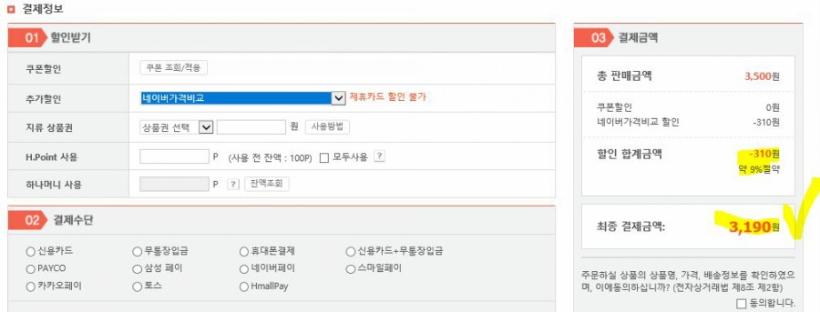 3,500원-3,190원(할인후 가격) = 310원 할인