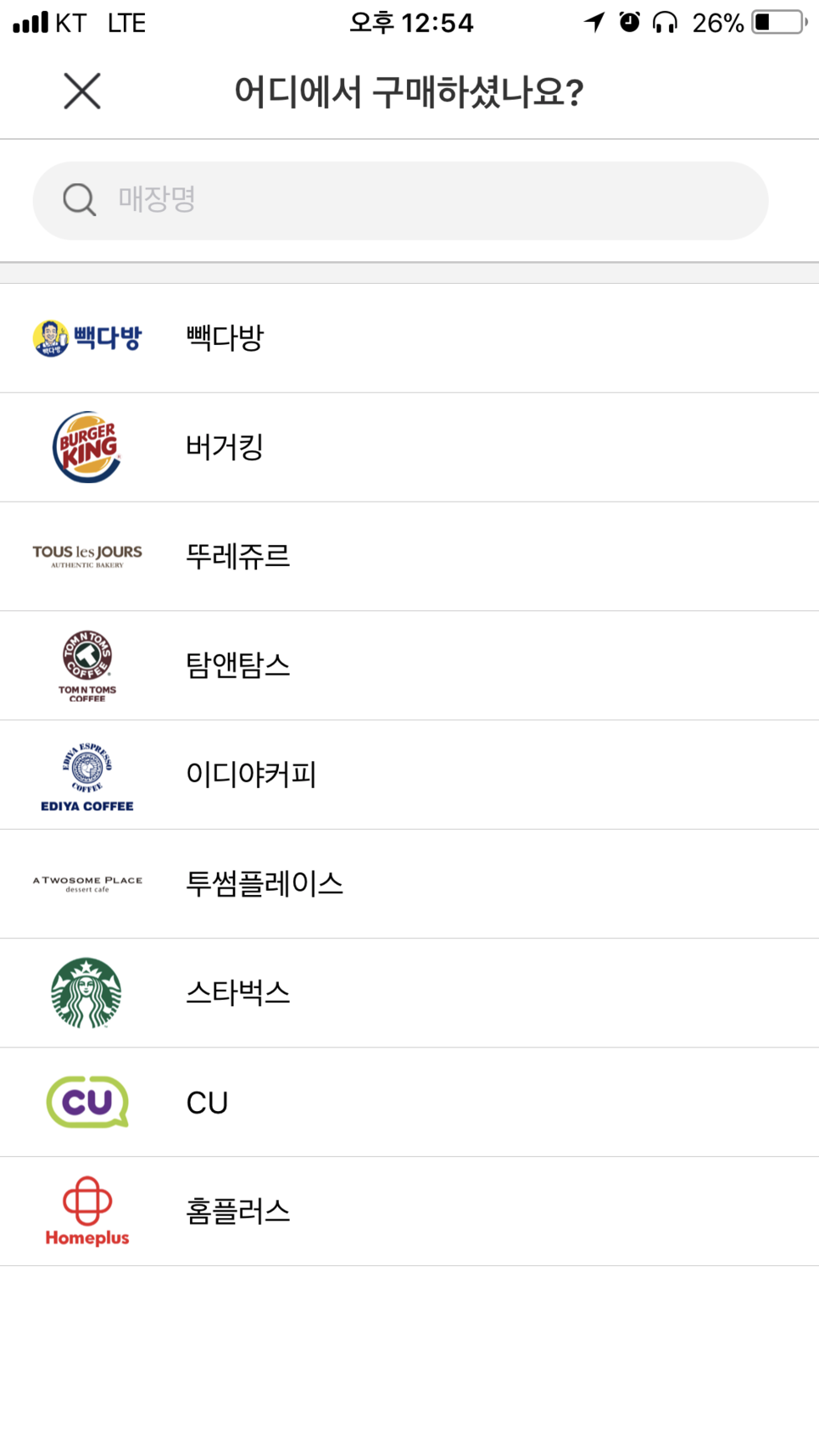 다양하게 있으며, 해당 매장이 리워드앱에서