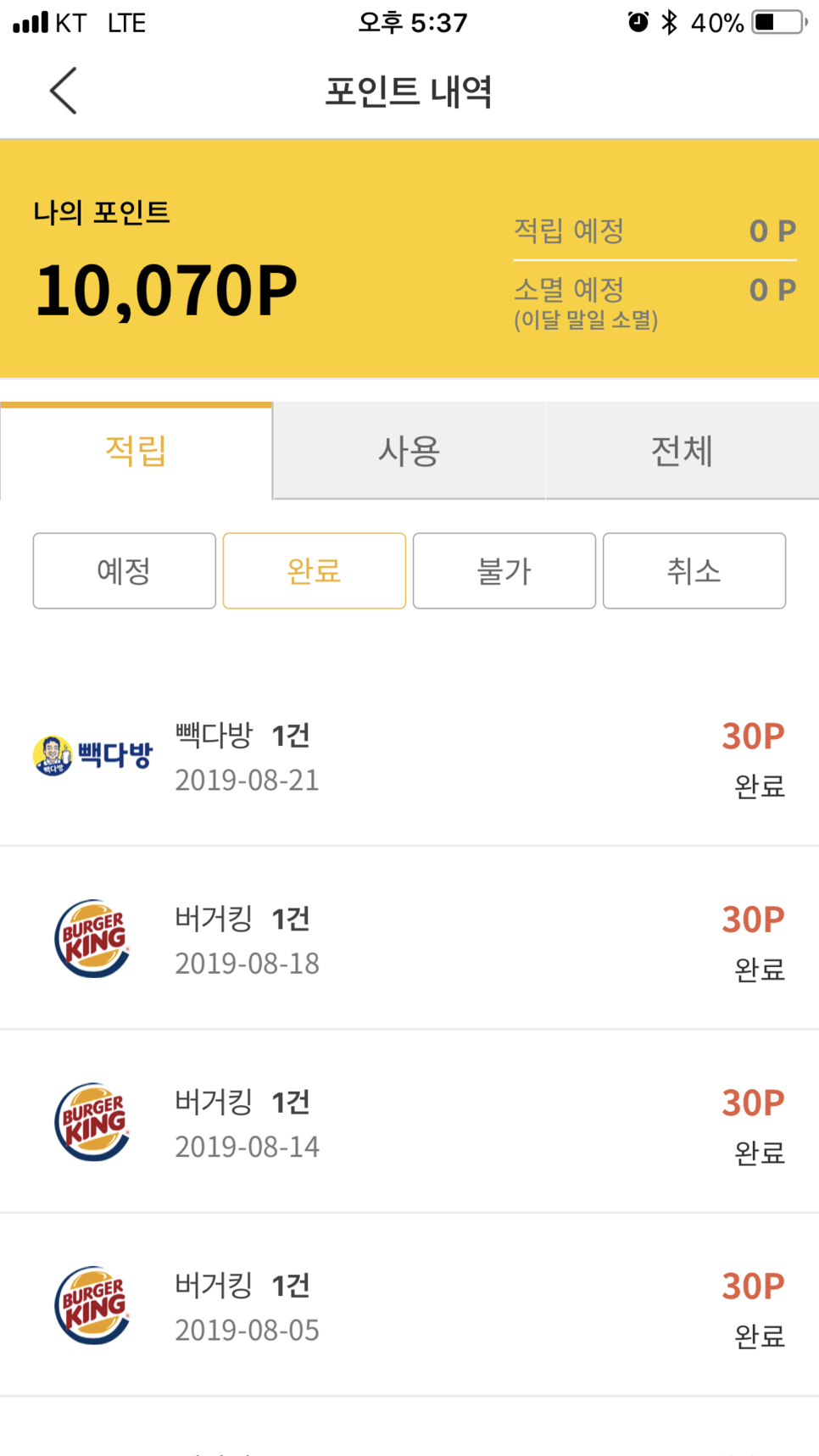 적립완료되면 실제로, 캐시카우앱에서